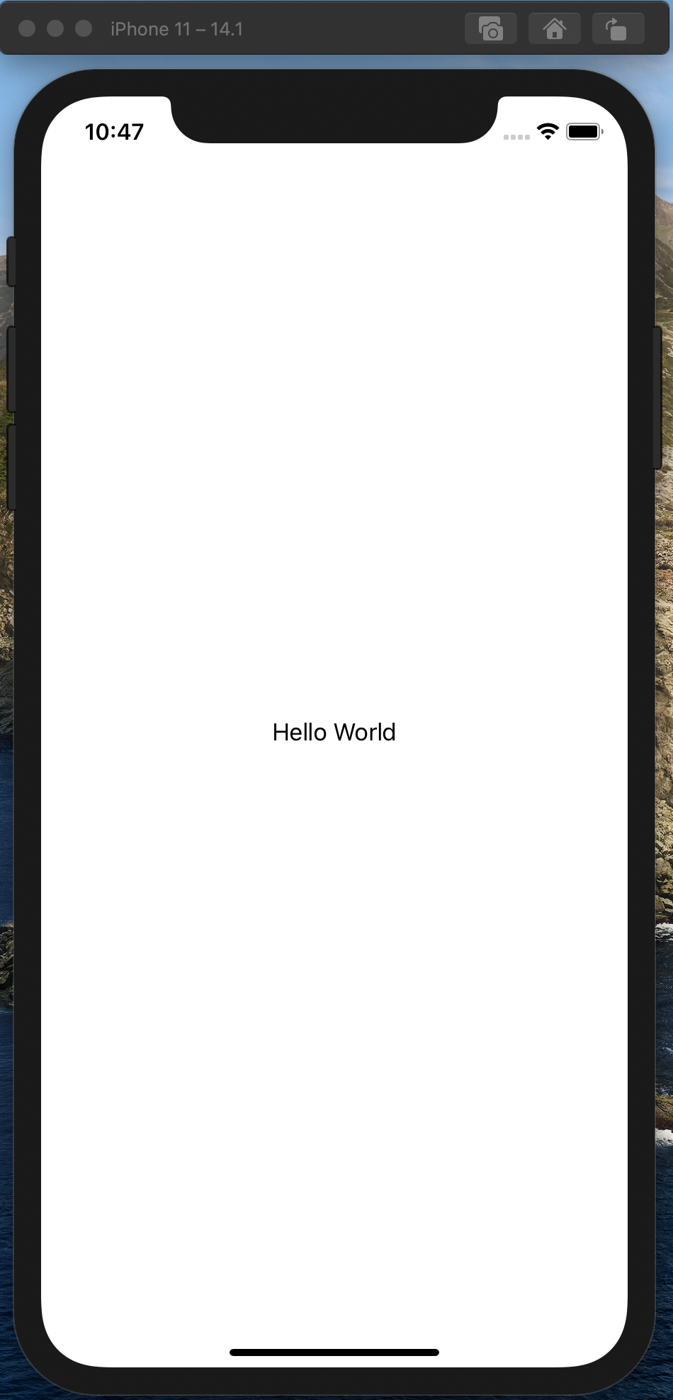 Xcode will launch the iPhone 11 Pro Simulator and you will see the text Hello World displayed in the center of the simulator.
