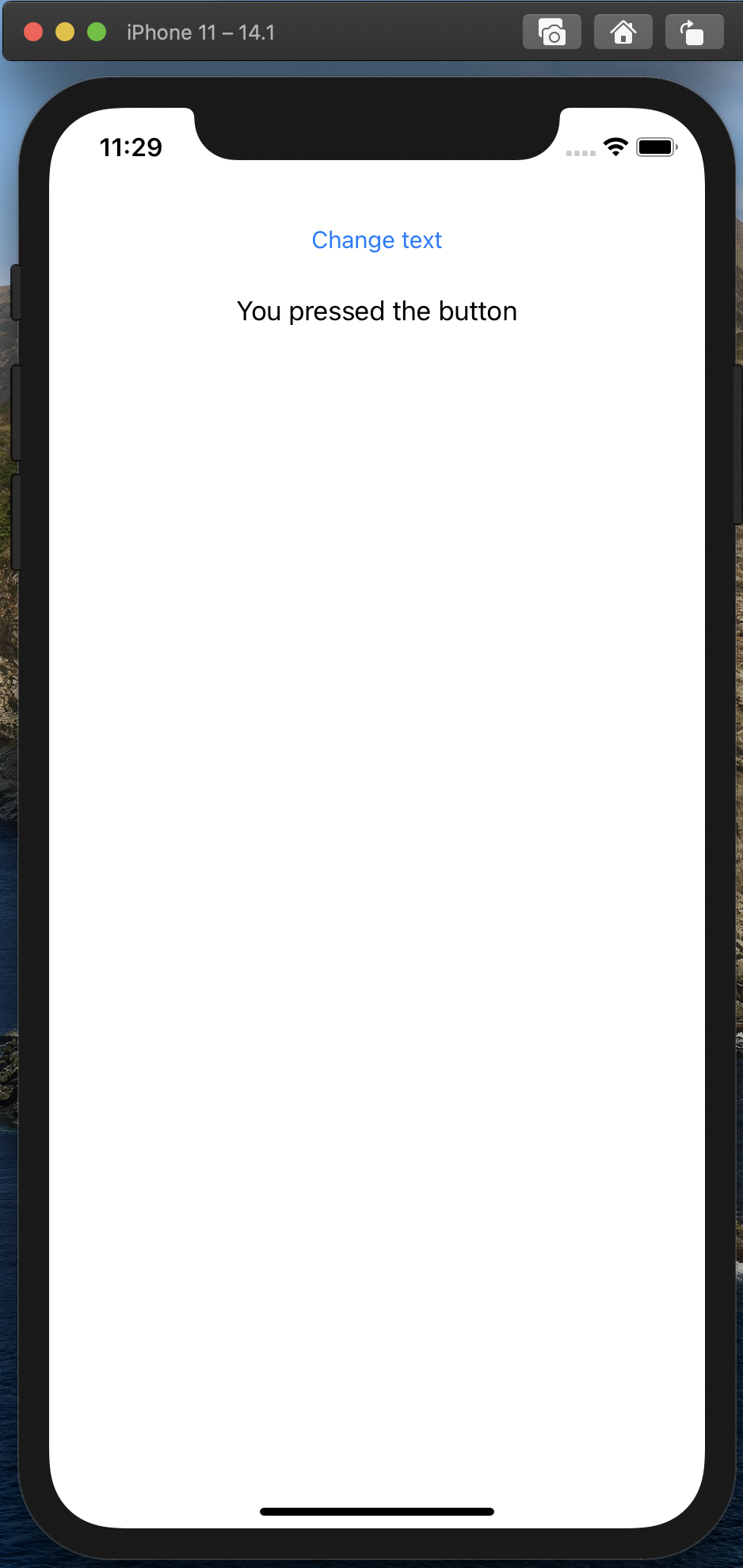 Run the application. You should see the text My first iOS Application displayed and clicking on the button should change it to You pressed the button.