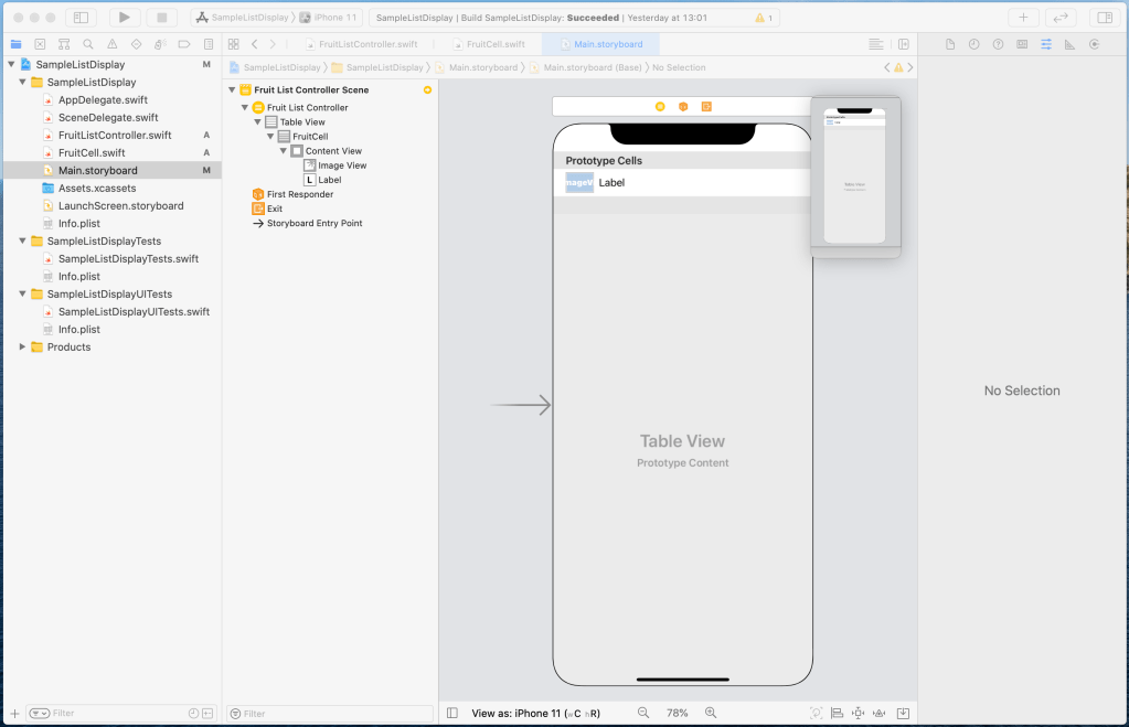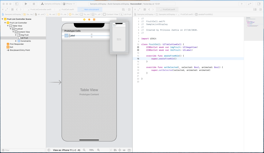 In our previous tutorial we displayed a fruit list in a UITableView using a default UITableViewCell. In this tutorial, we are going to design a custom cell with a UIImageView to display our fruit’s image and a UILabel to display our fruit’s name.