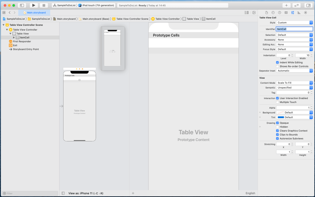 Then follow this tutorial to design a simple tableView. You should have a UITableViewController as your initial controller with ItemCell as your UITableViewCell‘s Identifier in your Main.storyboard.