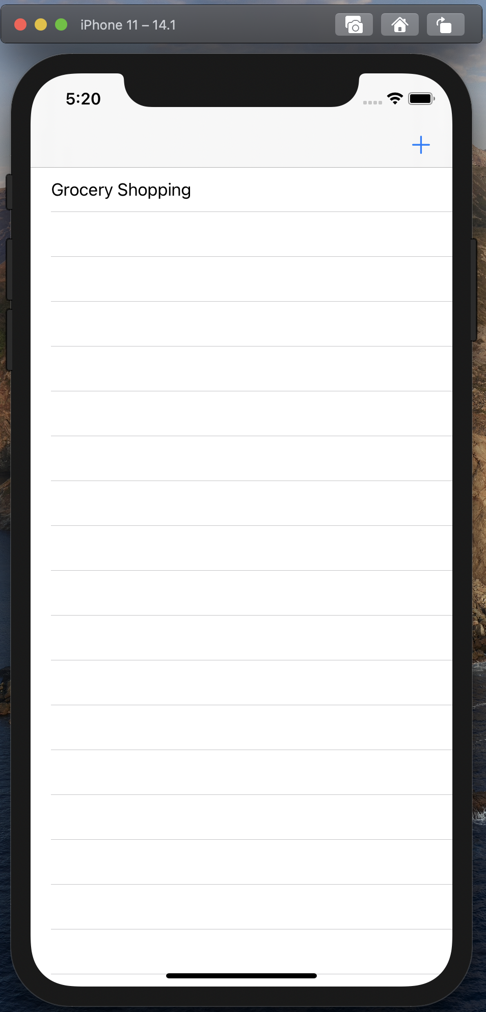 Run the app. Clicking on the top-right plus button will show an alert with a textfield. Type some text and then click OK.
