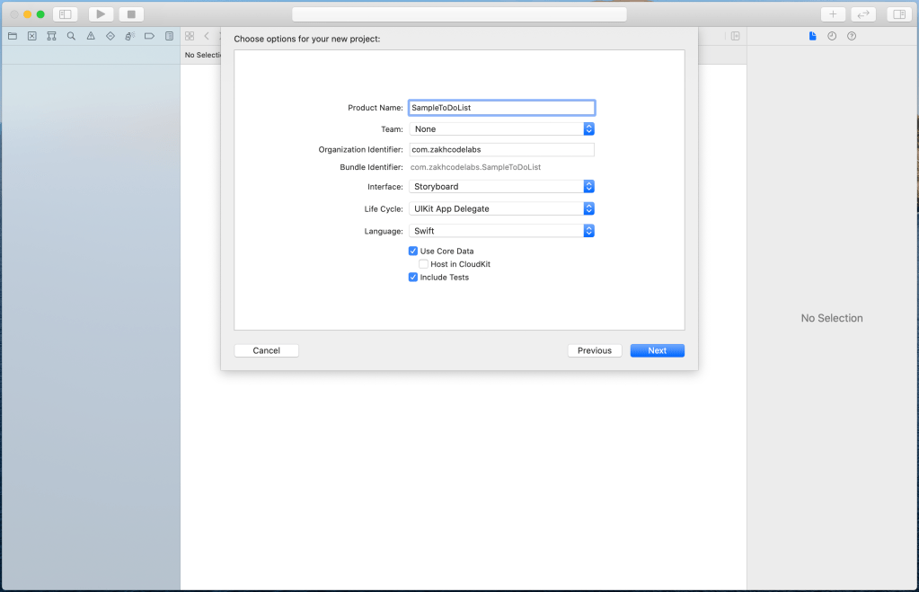 So far you learned how to populate static items in a UITableView. In this tutorial, you’ll build a simple to-do list app which makes use of a UITableViewController embedded in a UINavigationController. Create a new Xcode project and name it SampleToDoList. Make sure to check Use Core Data.