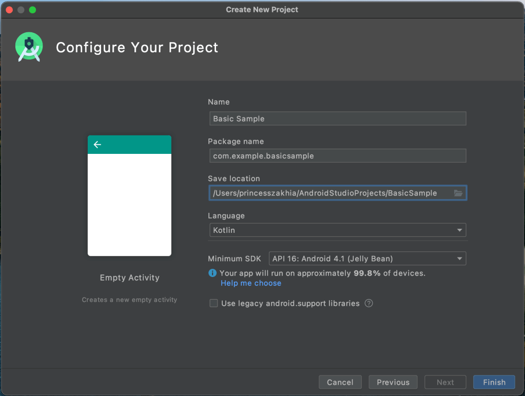 If you have correctly followed the steps above, you should now have an Android project.