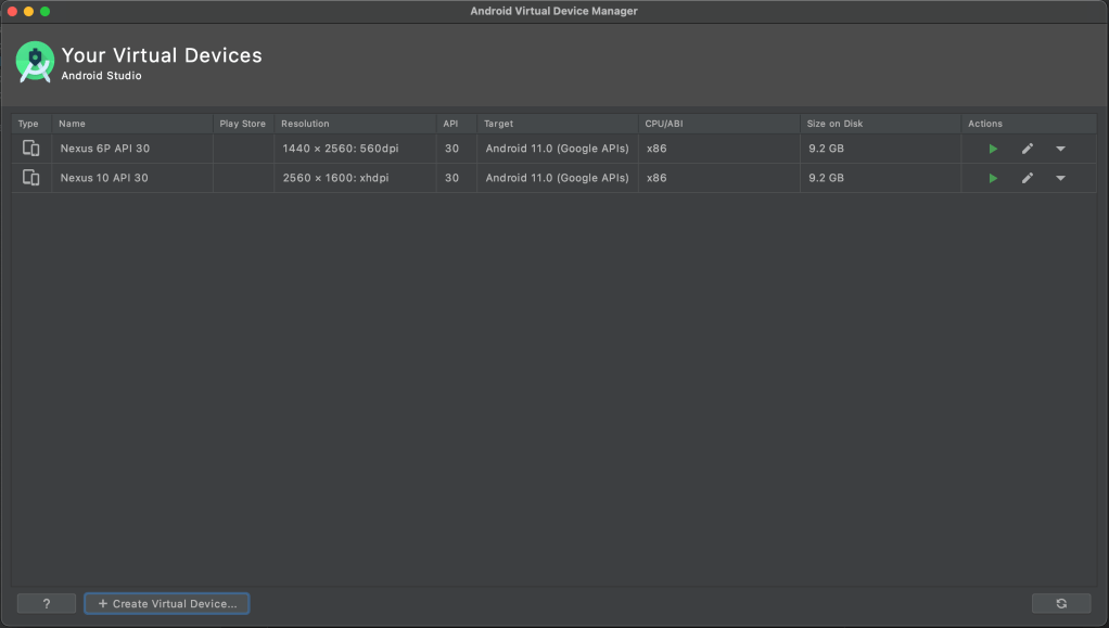 Click on Create Virtual Device….