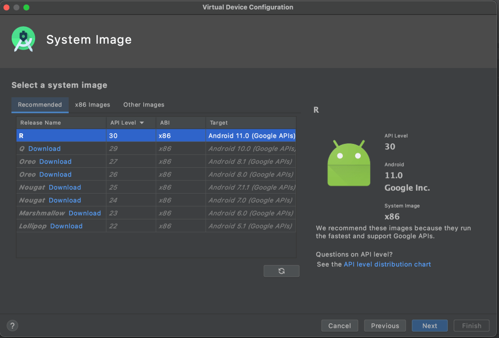Select the API Level 30, click on Download if required and then click Next.