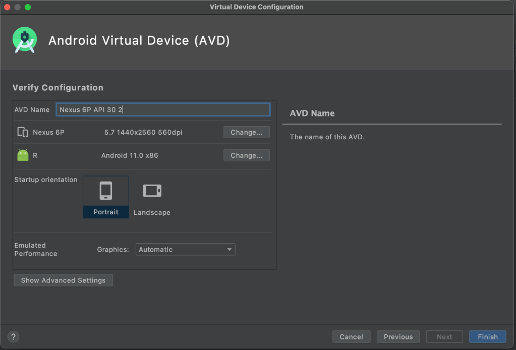 Select the Nexus 6P emulator and click on Run.