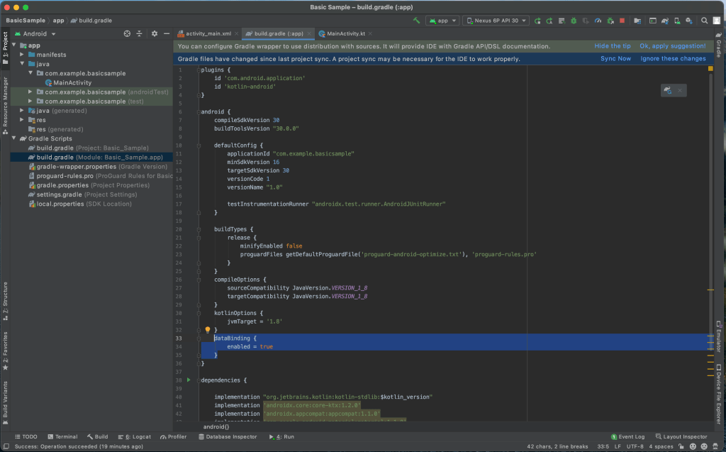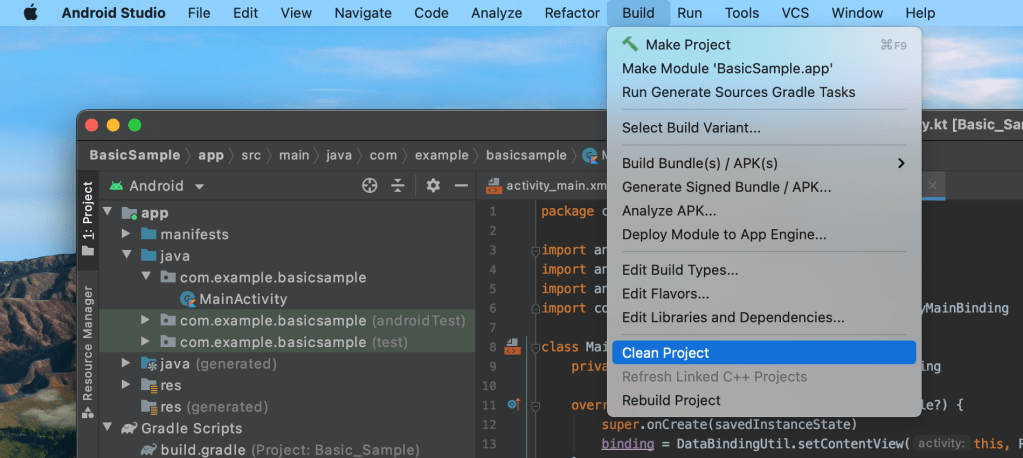 If you encounter errors regarding the ActivityMainBinding, click on Build and Clean Project.