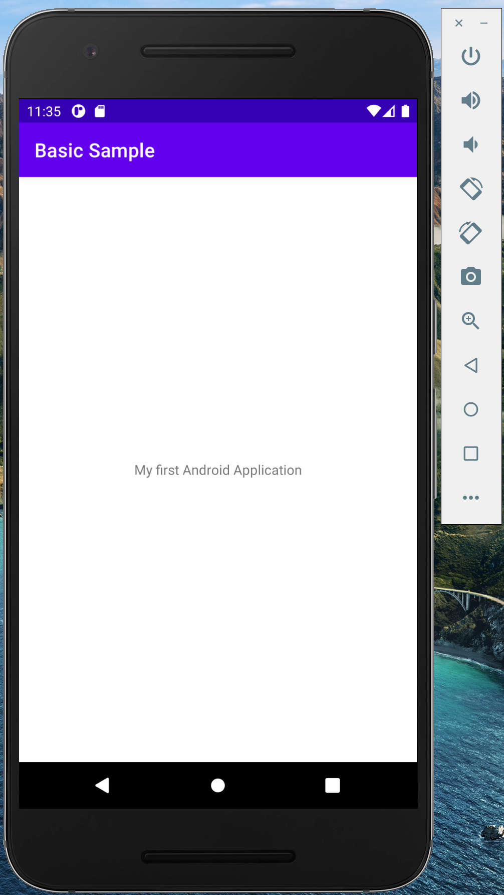 Android Studio will launch the Nexus 6P emulator and you will see the text Hello World! displayed in the center of the emulator.